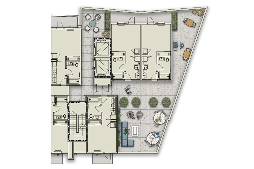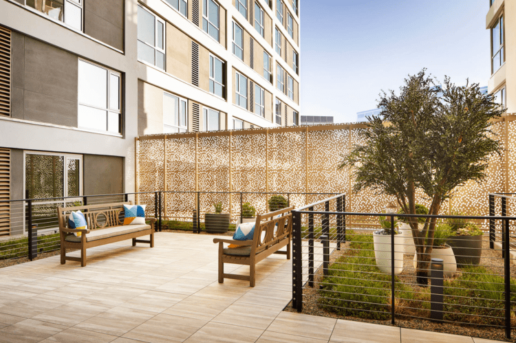 225 LA BREA brings 137 studio apartments to downtown Inglewood and provides an affordable alternative to this transit oriented development. At the ground level a design forward community park features games, a water table, built-in benches, barbecues, lounge spaces and fire pits. To create a space for residents to gather and relax, the level 2 roof deck includes lounge spaces, barbecue and green wall.