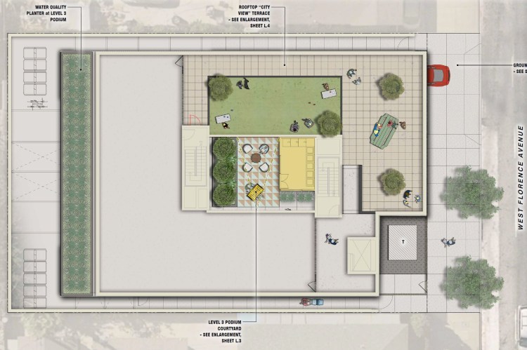 FLORENCE AVE. APARTMENTS features 27 affordable units in Los Angeles. This six-story building takes advantage of its proximity to public transit and features on-structure podium courtyard and rooftop terrace with spectacular views of DTLA.